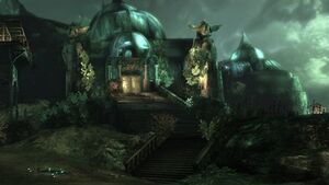 The Botanical Gardens of Arkham Asylum provided fresh greenery as possible rehabilitation for the institution's inmates. It included a Statue Corridor, an Aviary, and even a top secret Titan Production Facility that was used by Dr. Penelope Young.